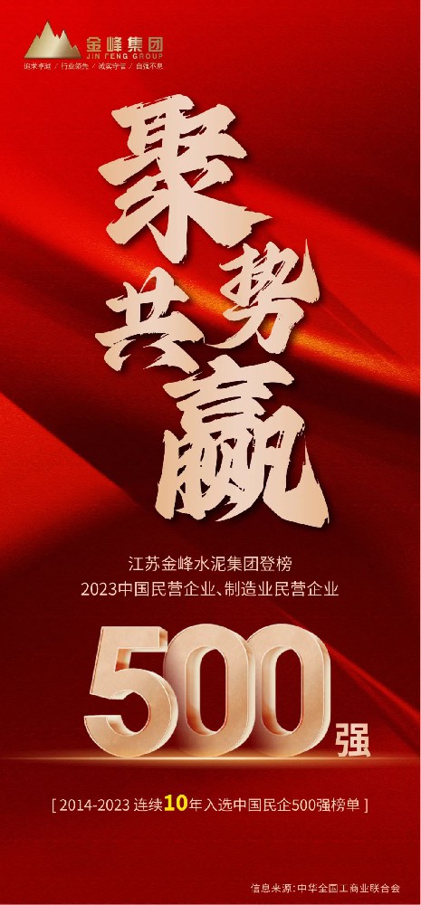 2023年9月12日,全国工商联发布了2023“中国民营企业500强”、“中国制造业民营企业500强”等名单。江苏金峰水泥集团有限公司同时登榜两个榜单。这是金峰水泥自2014年起,连续第十年入选该榜单。2023中国民营企业500强2022中国制造业民营企业500强榜单▲金峰集团办公大楼 近年来,金峰集团在各级领